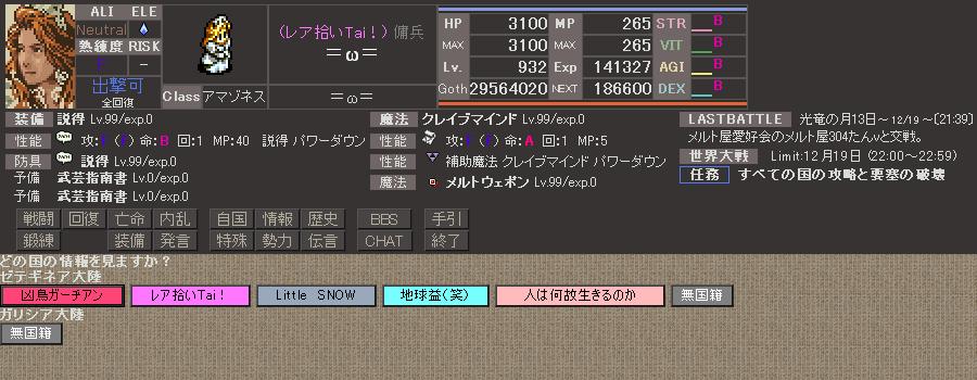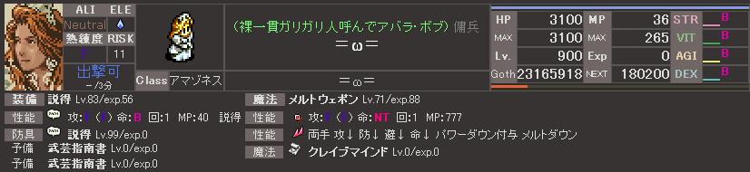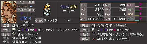 HPをもう少し上げれたと思うがLv上げの関係で打ち止めに