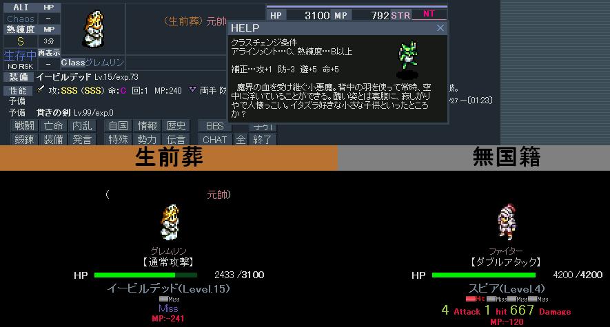 相手は熟練Fなのだが結構外していた、と言うか棺桶に捨て身6連続外した