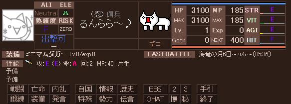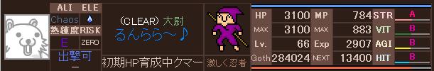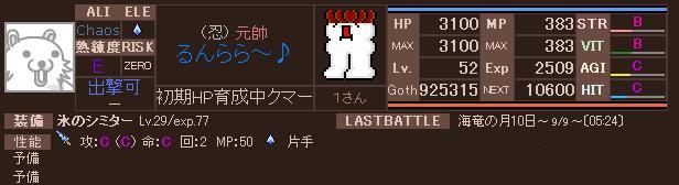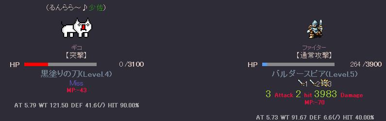 まったりまったり Lv上げに利用させて貰ったランカーの人階級下げてごめんよ~ まずはステの制限解除の為にCC目指そうと挑むも 返り討ちにあい 返り討たれ アッー!! 負けてばっかりじゃ無いんだから>< もう少しでCC出来そう、う~ん氷のシミター強いなぁ 当たれば・・・・・・ 命中、回避高めのクラスについてサクサク上げよう